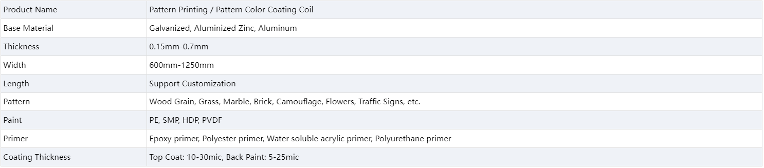 Patterned steel coil is a kind of color coated steel coil product with various patterns. Because of its beauty, convenience and excellent corrosion resistance, it has been widely used in home appliances, furniture, architectural decoration and other fields in recent years. The color and pattern can be customized.