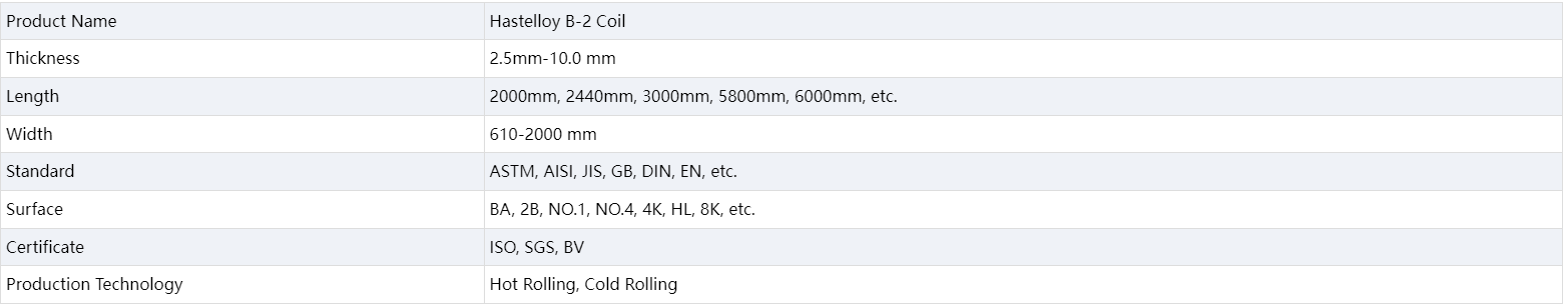 The chemical composition of Hastelloy B2 coil mainly includes nickel, chromium, molybdenum and a small amount of iron, tungsten and other elements. The combination of these elements gives the material excellent corrosion resistance and high-temperature strength. Among them, the nickel element provides good corrosion resistance, the chromium element enhances the material's corrosion resistance in an oxidizing environment, and the molybdenum element improves the material's corrosion resistance in a reducing environment. The addition of elements such as iron and tungsten further enhances the strength and hardness of the material. Hastelloy B2 coil has good processing properties and can be used for hot processing and cold processing.