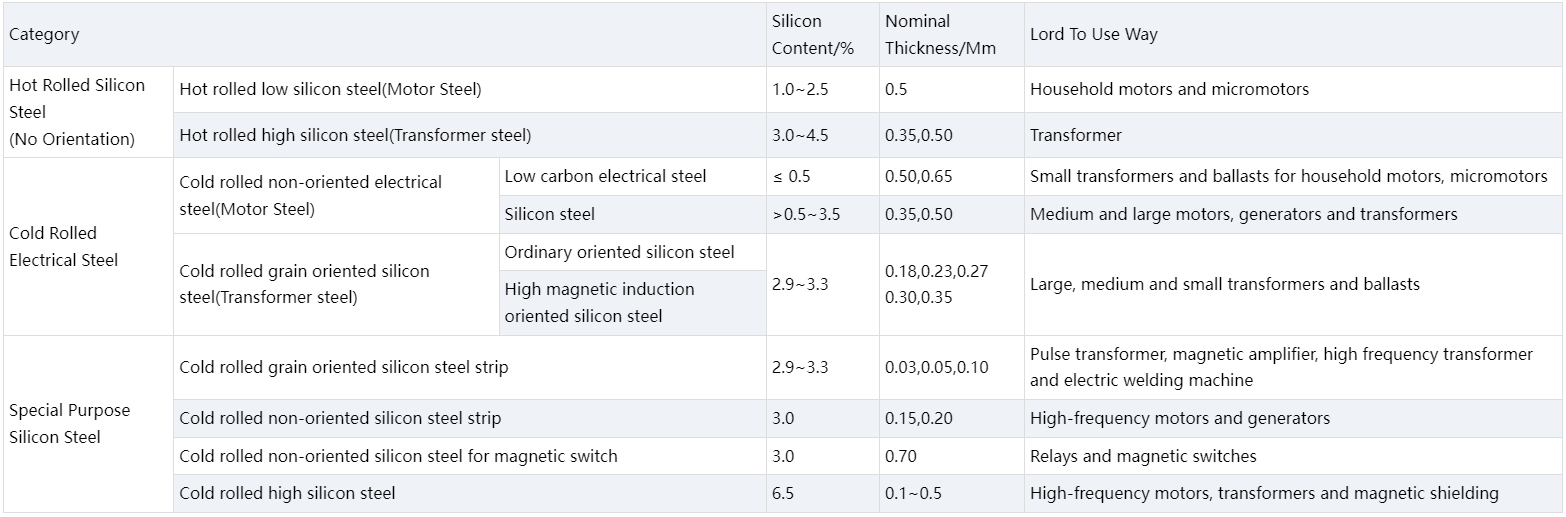 Oriented silicon steel, also known as cold-rolled transformer steel, is an important ferrosilicon alloy used in transformer (core) manufacturing industry. The most widely used oriented silicon steel is supplied in the form of a coil, and its surface is coated with an insulating layer to generate tensile stress in the base steel strip, thus further reducing the iron loss value. The cold-rolled strip has a smooth surface, good punching performance and high core filling factor.