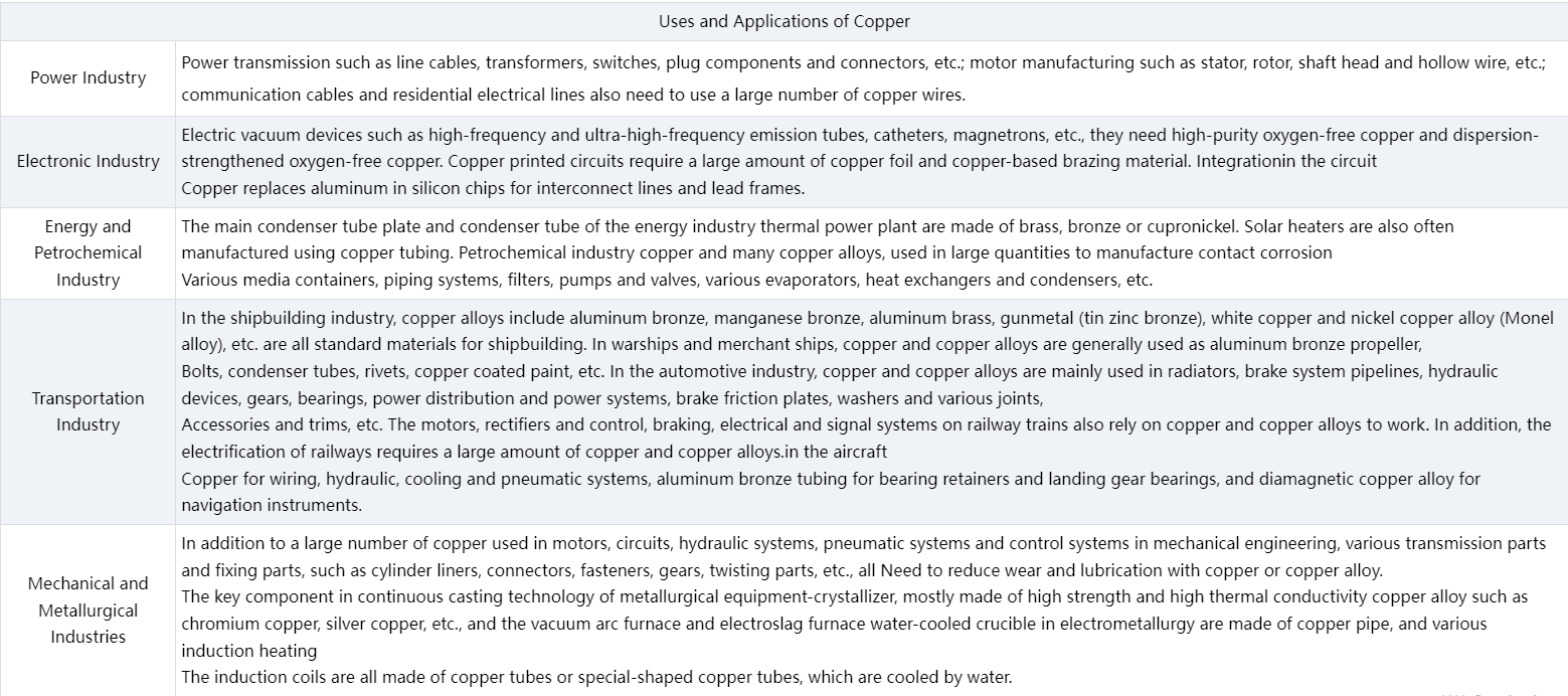C10200 copper pipe has a conductivity of over 99%. This high conductivity can effectively help improve current transmission efficiency, so it is very suitable for high-power current transmission. In addition, C10200 copper pipe has excellent machining properties and can be processed into products of various shapes and sizes. Its high strength and corrosion resistance can maintain its performance for a long time. C10200 copper pipes can be formed by cold working and hot working, and its weldability and processability will not be affected by the oxygen content. Lastly, C10200 copper pipe has a wide range of applications in the fields of electrical, heat exchange and precision manufacturing due to its high purity and excellent physical properties.